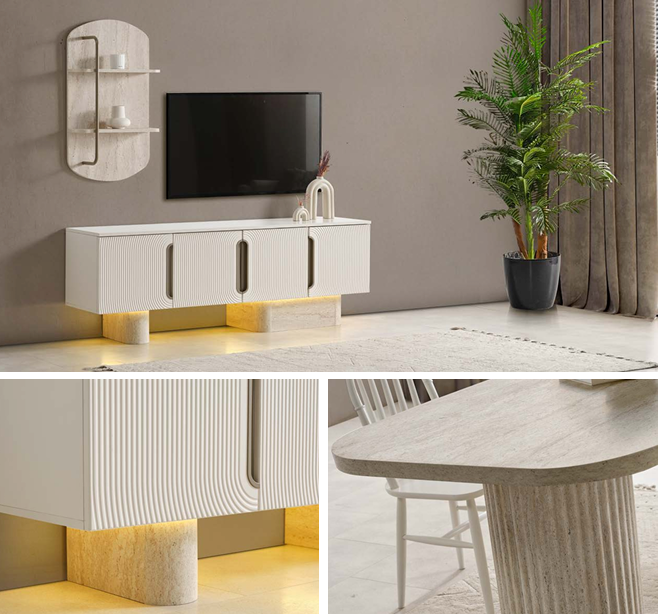 YEMEK ODASI:MASA.4 SANDALYE.KONSOL AYNA