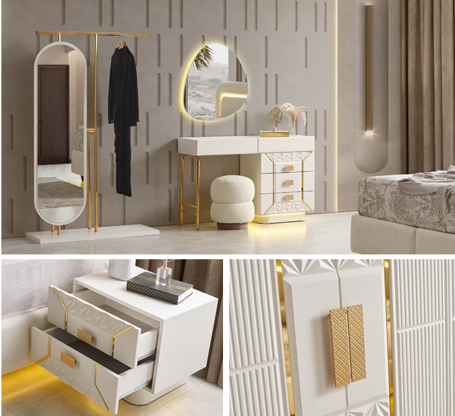 YATAK ODA TAKIMIMIZ: DOLAP .AYNALIŞİFONYER . BOY AYNASI DİLSİZ UŞAK VE PUF ..2 ADET KOMİDİN BAŞLIK.