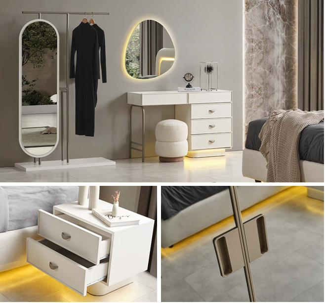 YATAK ODA TAKIMIMIZ 1 ADET DOLAP .2 ADET KOMİDİN.1 ADET BAŞLIK .1 ADET BOY AYNASI.1 ADET PUF .AYNALI ŞİFFONYERDEN OLUŞMAKTADIR.